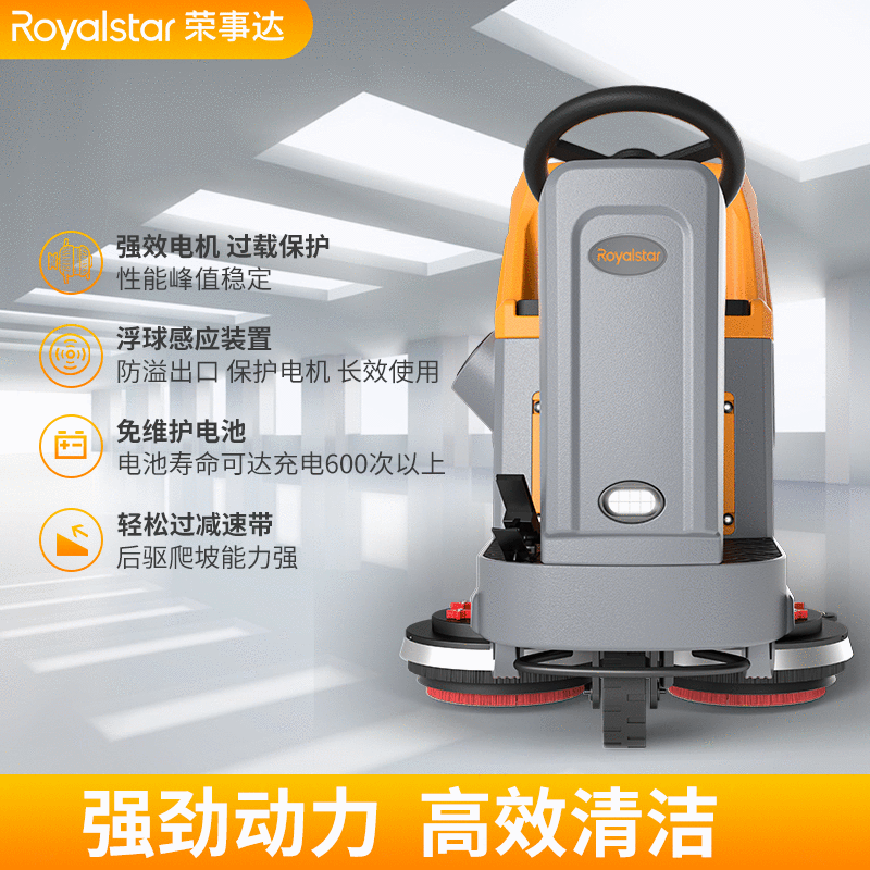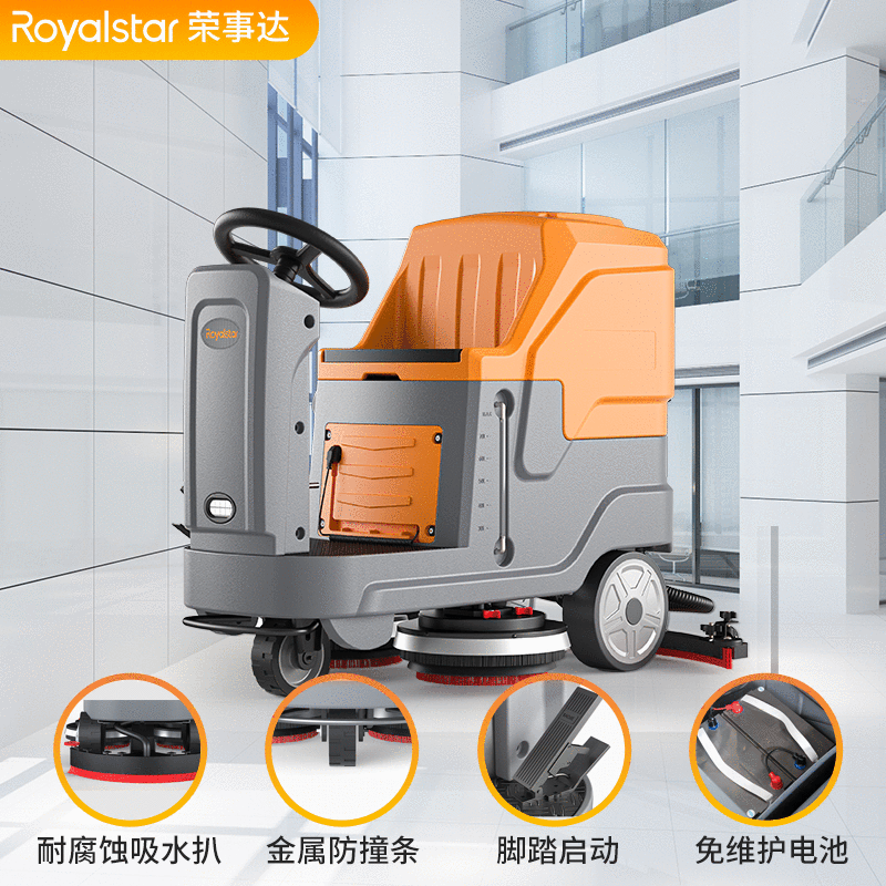 榮事達駕駛式洗地機RS-D85強效洗地電機,性能峰值穩定,配備了漏電保護裝置,使用更加安全,采用雙出水系統,杜絕了使用過程中的清水自流,清水過濾和防止雜物進入電磁閥的情況,減少洗地機在使用過程中一些不必要的問題。防止清水外濺,垃圾進入到刷盤底部,對地面造成損傷。設備配備了不銹鋼吸水扒加上防腐耐磨的吸水膠條,讓吸水更加徹底,從而達到高效清潔的目的。...