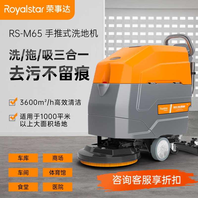 榮事達(dá)洗地機(jī)手推式RS-M65采用耐腐蝕吸水扒、硬毛地刷、免維護(hù)電池,吸污更加徹底,避免清潔過程中出現(xiàn)污水殘留。一機(jī)就能搞定地面油污、灰塵、積水問題。...